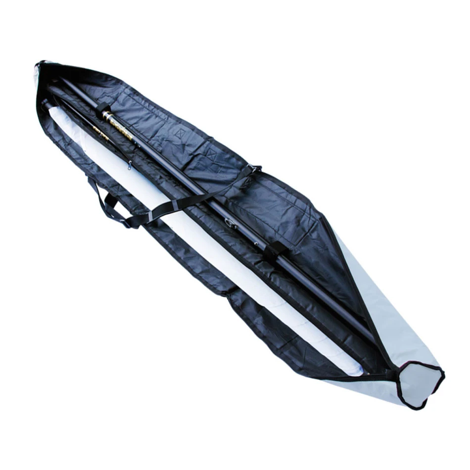 Le premier compartiment permet de ranger le mat. des attaches velcro permettent de le maintenir. Le compartiment centrale zippé permet de ranger deux livardes.