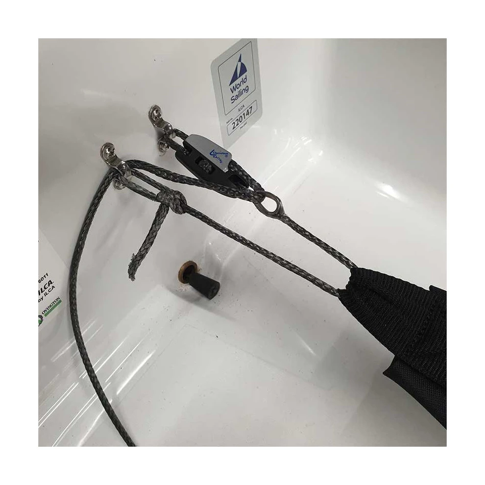 Le kit de réglage de sangle pour dériveur laser et ILCA, permet un réglage de la sangle de rappel précis facile et rapide. Le palan pour sangle de rappel permet de tendre à fond la sangle d’une seule main. Le kit s’adapte à toute les sangles de rappel..